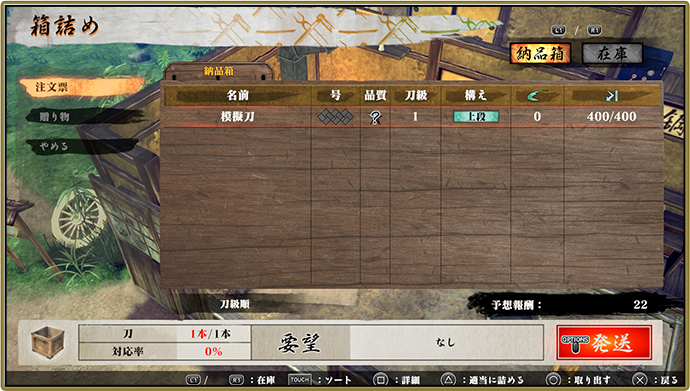 刀を発送すると報酬がもらえる。