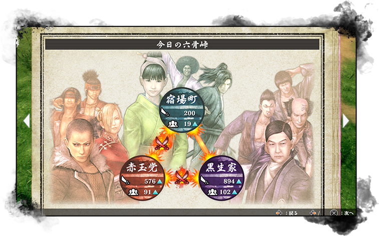 武力差を開くために、特定勢力だけに刀を発送したり、自らが辻斬りをして勢力を減らしたりと、情勢をコントロールし、戦を起こすことが可能。